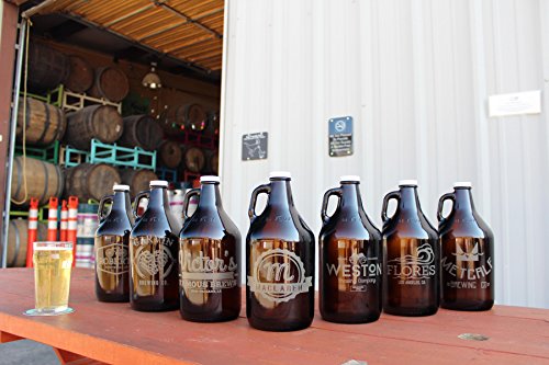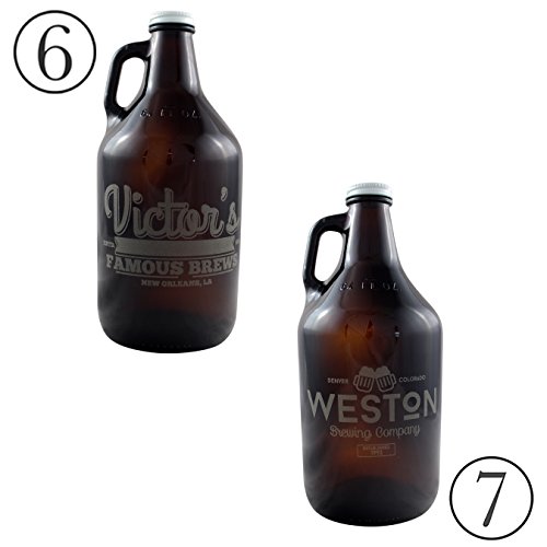 Product Description Carry your craft beer in style with a custom-etched growler! Choose from one of our popular 7 designs. Our amber glass growlers ship within 1 BUSINESS DAY and we always have FREE DOMESTIC SHIPPING, meaning you pay only $29.99 for your custom glass growler. Choose Customize Now to get started! ------- Spotted Dog Company creates our beautiful designs and does high-quality etching in Fayetteville, Arkansas. 0
