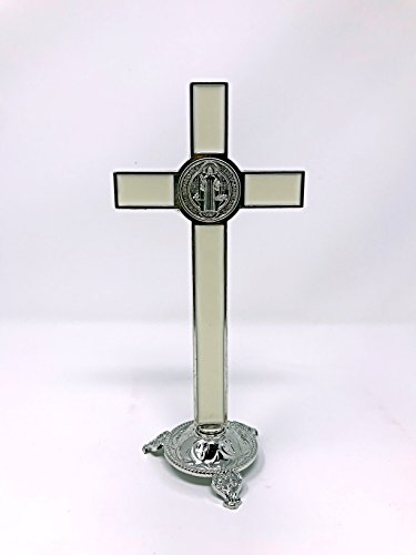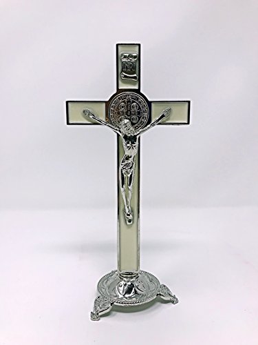 8.75" Metal Jesus Crucifix Table Alter Stand INRI, Ivory