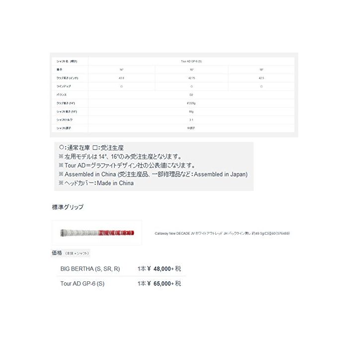 원본상품명: キャロウェイ ビッグ バ?サ アルファ 816 (BIG BERTHA ALPHA)フェアウェイウッド Tour AD GP-6 Sシャフト
