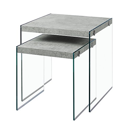 -. Title : L&S Basics 10610 Nesting Table - 2Pcs Set / Grey Cement / Tempered Glass
