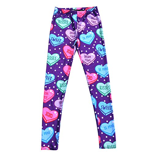 Title : Jescakoo Rainbow Heart Candy Print Colorful Party Costume Leggings for Girls S