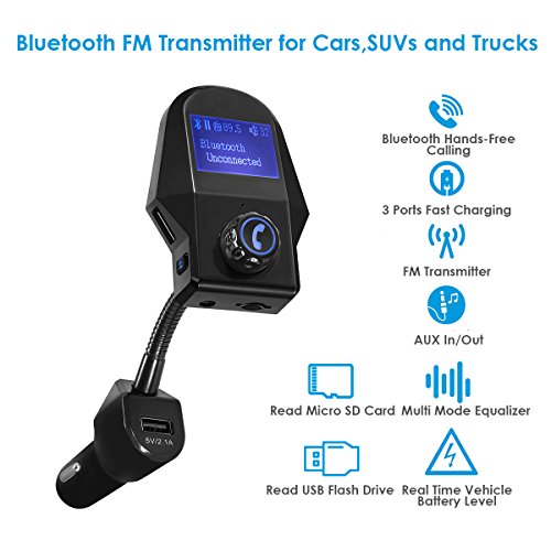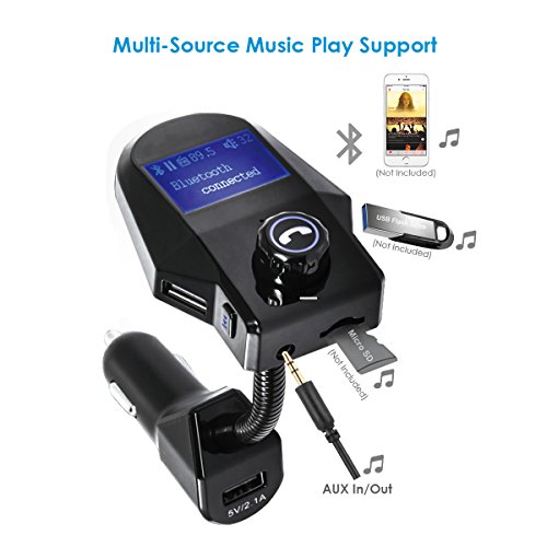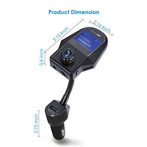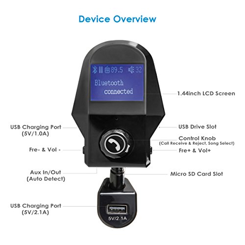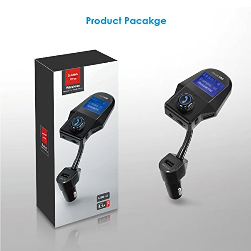 Bluetooth FM Transmitter, OUMAX BTF05 Wireless Bluetooth FM Transmitter with 1.44 Inch Display, AUX IN/OUT Auto Detect and 5V/2.1A USB Car Charger Black