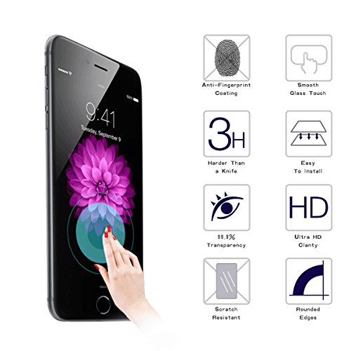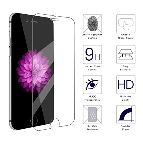 -. Feature : Package includes:1* HD Tempered Glass Screen Protector, 1* Installation guide,1* Dust removal sticker, 1* wet and dry wipes / Nicer® Tempered Glass Screen Protector provides superior Protection for Your iPhone 7 / 6S / 6 device ( 4.7" ) / Please Note: Our screen protectors are designed to be a little bit smaller than phone screen for easier installation to avoid curved edge of iphone 7 / 6S / 6. / Bubble-free, Anti-Fingerprint, and Ultra-clear with 99.9% transparency to make sure that you can experience the best touch screen sensitivity and maximum clarity. / Reliable way to protect your iphone screen from scratches - Surface Hardness 9H