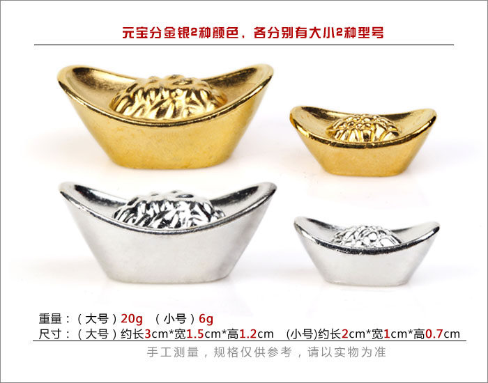Size: Small gold and silver ingots: about 2cm * 1cm * height 0.7cm width?