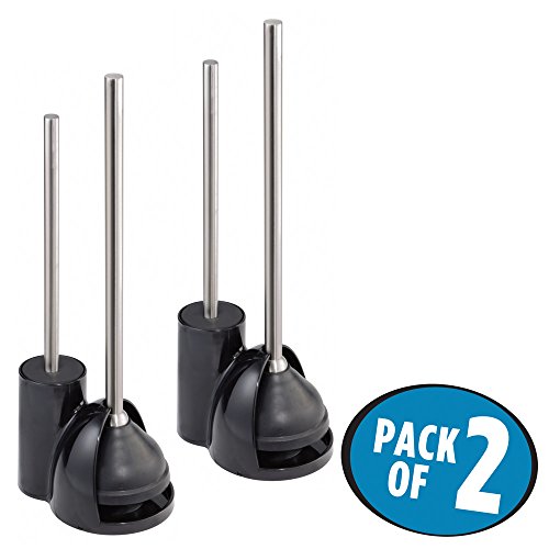 mDesign Slim Toilet Bowl Brush and Plunger Combo for Bathroom Storage - Pack of 2, Black/Brushed SS
