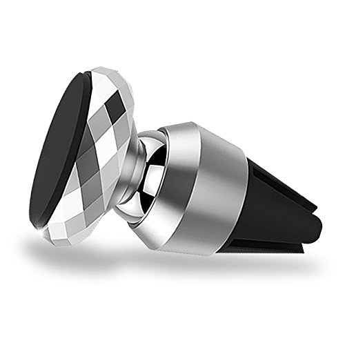 -. Feature : Car phone mount,the magnetic air vent phone holder for car holds your phone firmly in the air vent section,within easy reach for you to check GPS map,Music playing with one hand / The magnetic power from the built-in NdFeB magnet ensures your phone is securely and firmly in place with high performance while you driving on the road / 360°rotational ball head enables you to adjust the phone horizontally or vertically to fit the situation for your best viewing angle while navigating / The high quality extended grip guarantees the base of the mount fix into most straitght air vent firmly, the silicone gel cover can also protect your air vent from scratching / Easy to use,simply insert the mount into the air vent of your car,stick the metal plates onto the back of your phone and attach it to the magnetic area,easily remove the mount when you leave