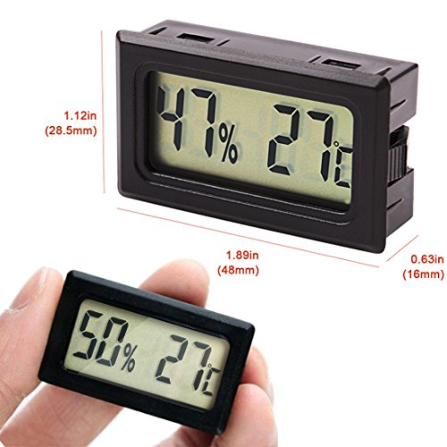 >Applicable for fish tanks, pet box, drying box, red wine cooler, medical incubator. >Temperature testing range: -50 to 70 Celsius degree;Humidity testing range: 5% to 95%. >Dimension : Around 4.8 x 2.8 x 1.4 cm[ Super Tiny ];Weight: around 20g [ Super Light ];Power supply: 2 x 1.5V button cell >Monitor the condition (Temperature , Humidity ) of the Environment Easily,Degree Celsius (C) Display Only.