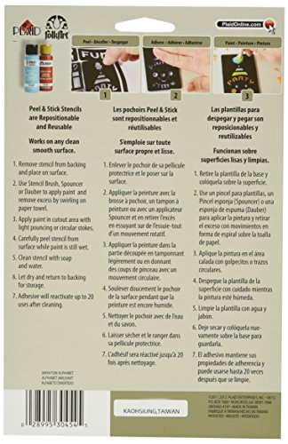 FolkArt Peel and Stick Painting Stencils-Fun Alphabet. Delight in an expansive color palette and explore new painting techniques with FolkArt premium acrylic paints. Developed for both strokework painting and a variety of decorative craft activities, the FolkArt line of paints features amazing colors in a variety of formulas and finishes to inspire your creativity. Perfect for decorative painting, artist-quality FolkArt Acrylic Colors offer superior hide and a creamy consistency for exceptional blending and brushability. FolkArt Enamels make painted glassware dishwasher safe while FolkArt Outdoor offers weather-resistant durability. Add sparkle, shine or other special effects to your projects with specialty acrylic paints such as FolkArt Extreme Glitter, FolkArt Neons, FolkArt Chalkboard Paint and more. From beautiful hand painting to stylish stenciling and design techniques, FolkArt delivers outstanding results. Explore them all to find your favorites The Complete FolkArt Line includes: Acrylic Paint Chalkboard Enamels ExtremeGlitter Fabric Mediums and Finishes Neons Outdoor Shiny Stains Texture Tools Painting Design Tools. Actual font height is 0.75"Feature