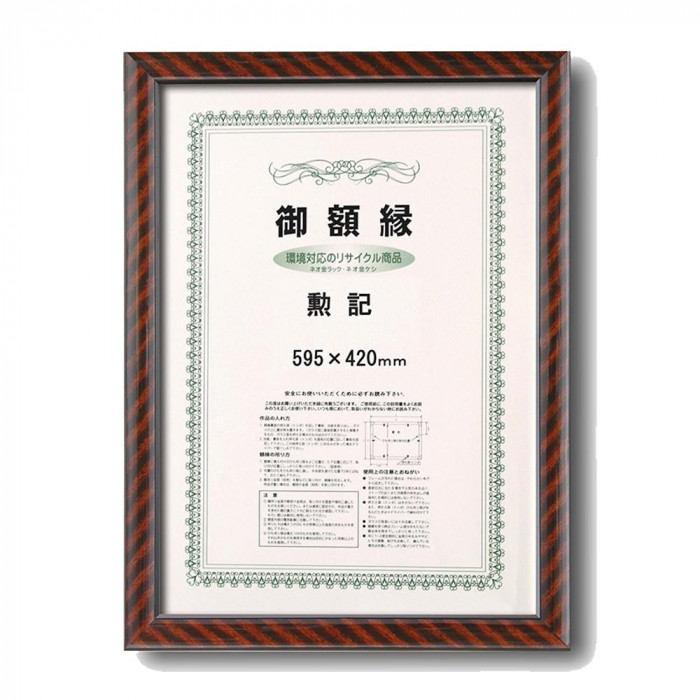 樹脂製のフレームでガラス仕様の賞状額です。表彰状や卒業証書、資格免許証などにお使いいただけます。裏から簡単に賞状を入れることができ、工具は不要です。 |