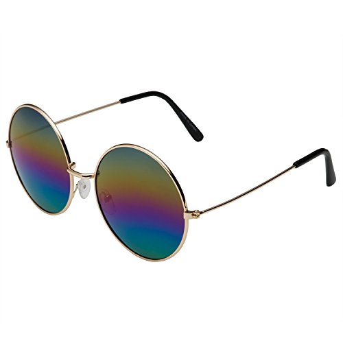 grinderPUNCH's Large Round Women's sunglasses offer UV400 Protection and fashion forward rainbow mirrored lenses.