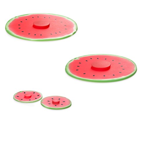 - 4 pc. silicone lid set includes 11”, 9” and 2 -4" Drink Covers in a beautiful Watermelon design.