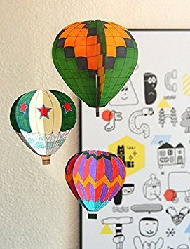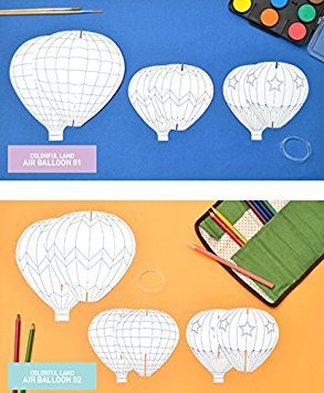 JAMSTUDIO Colorful Land Air Balloon - DIY Coloring Mobile,Garland (2 Pack Set)
