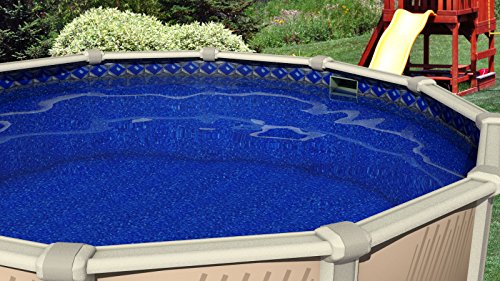 ATTRACTIVE DESIGN: The Crystal Tile pattern lays out an attractive array of silver and sapphire crystals arranged in a diamond ring around the top of your pool. This comes out of the box with reducing wrinkling as it hand folded rather than packed with an automated machine. Permanent creasing and excessive wrinkles will not be an issue with this overlap swimming pool liner.