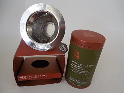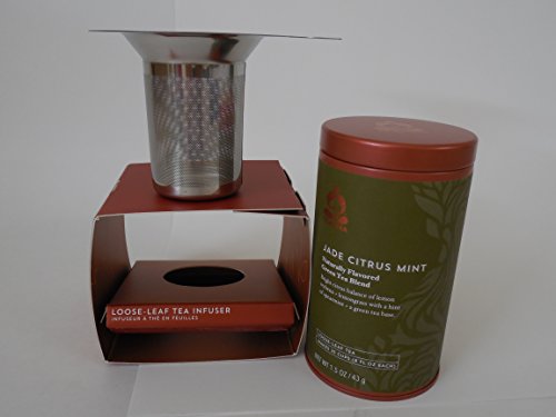 For loose-leaf tea lovers, this set includes 1.5 oz of Teavana® Jade Citrus Mint loose-leaf green tea in a beautiful tin can and a stainless steel infuser with fine, laser-cut mesh. Enjoy the refreshing and invigorating flavors of Teavana® Jade Citrus Mint Loose-Leaf Green Tea. Like sun streaming through the mist over a verdant garden, lemon verbena and lemongrass add bright notes to rich green tea. A hint of refreshing spearmint balances this invigorating, yet calming blend. Makes 25 cups (8 fl oz each).Feature