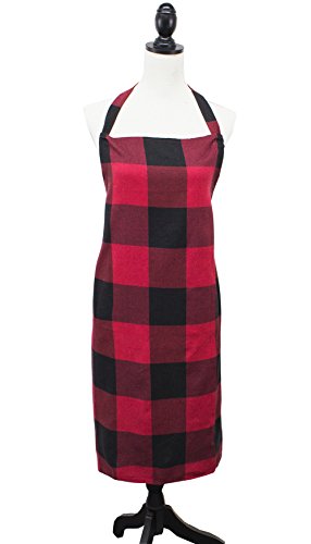 Fennco Styles Buffalo Check Plaid Design Cotton Kitchen Full Size Apron (Red, 24"x36" Apron)