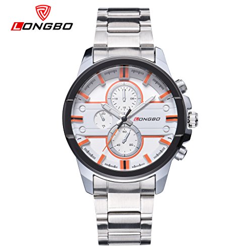 원본상품명: 人のための、LONGBO人の、ユニ?クな大きい、顔アナログクォ?ツ腕時計銀ステンレス鋼バンドビジネス手首時計、陽?な?光する防水性がある?飾クロノメ?タ?目オレンジダイヤル軍隊軍隊時計