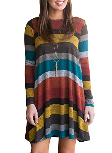 -. Feature : Attention: All authentic 'onlypuff' products sold through AMAZON.com are sold only by the seller 'onlypuff', 'onlypuff' has Registered US Trademark. Products sold by other sellers are imitation products and will not be shipped.Please select SOLD BY 'onlypuff', the real security is not deceived. / 85 Polyester, 15 Cotton.Premium Soft for Your Skin,Comfortable to Wear. Unique Design: Stripe Patern,Casual and Loose Style,A-Line,Knee Length,Irregular Hem,Flared Dress with Two Side Pockets / This dress features trendy chunky stripes, a fun flared fit and best of all, pockets! You can't get any better than this casual beauty dress / Occasion: casual, working, party, a play ,church etc. Perfect for Fall ,winter, you can wear it with leggings,boots,Sweater Chain / Pls check the Size Chart in the Product Description carefully before you order.