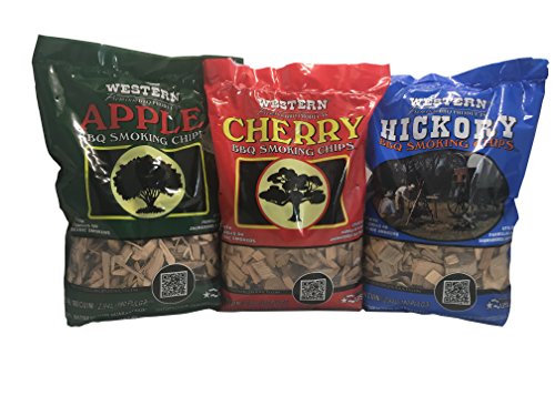 Popular Western BBQ Smoking Wood Chip Variety Pack Bundle (3) - Popular Flavors - Apple & Hickory, with Cherry