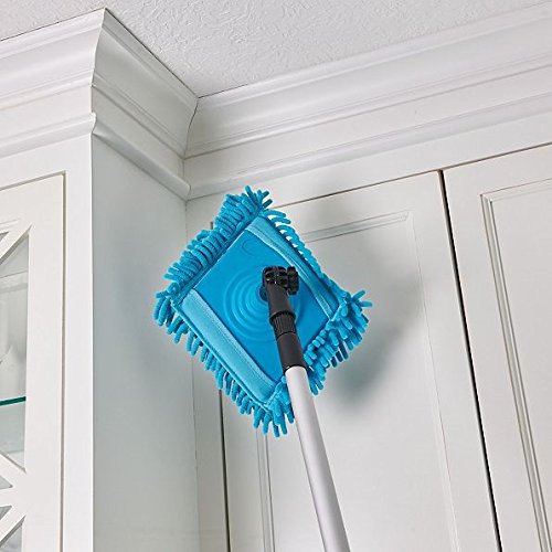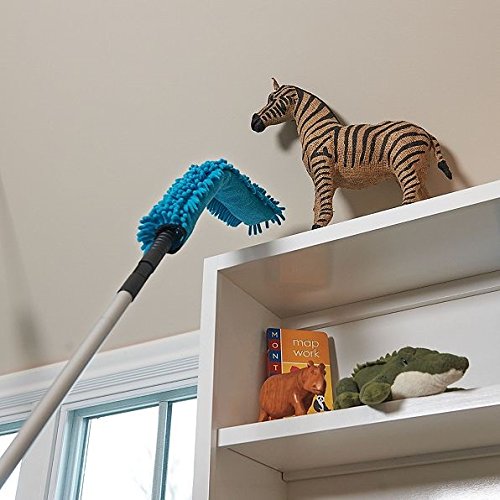 - Included:Deluxe High-Reach Cleaning Set: Telescoping Pole, Ceiling Fan Duster, Cobweb Dome Duster, Standard and Floodlight Bulb Changer, Bendable Chenille Duster, 16"L Flexible Microfiber Duster, Corner Duster, Flat Chenille Duster, Window Squeegee/Scrubber with Microfiber Cover, Multi-Angle Adapter, Storage Bag with Hook