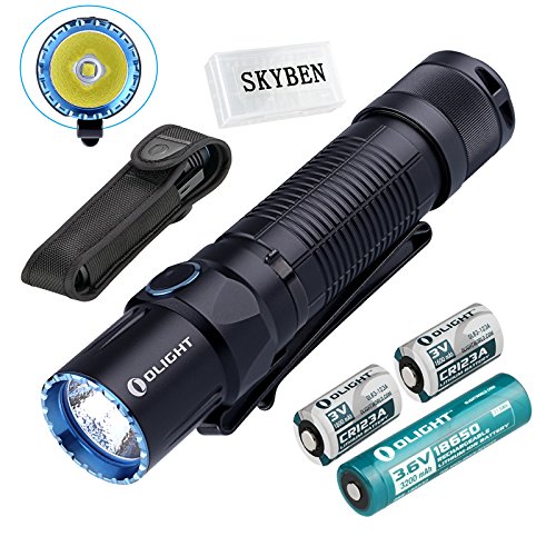 SKYBEN Olight M2T Warrior 1200 Lumen Cree XHP35 HD CW LED Dual Switch Tactical Flashlight High Lumen Output Waterproof Flashlight with 2 x CR123A Battery and Battery Case.