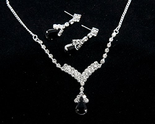 -. Binding : Jewelry -. Brand : JewelryStylist.com -. Color : Black -. Department : womens -. Feature : Sparkly Rhinestone V Necklace with Black Austrian Crystal Pear-shaped drop. / Necklace can be worn between 19-21"s with attached extension / Matching Rhinestone Earring are 1 3/4" long / Shipped in a black box or organza bag for easier gift giving -. ProductGroup : Jewelry -. ProductTypeName : FASHIONOTHER -. Title : Black and Rhinestone V drop Necklace & Earring Set - Black Prom Bridesmaid Jewelry