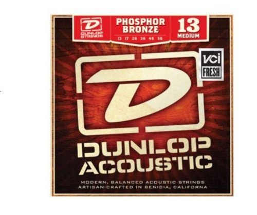 Studio : Jim Dunlop Publisher : Jim Dunlop Binding : Electronics Product Description Dunlop Phosphor Bronze acoustic guitar strings begin with the finest materials. Custom wound onto a high carbon steel hex core, they offer players a warm full-bodied tone with incredible clarity and dynamics. Our formula creates strings that are exceptionally long-lived; they break in fast and stay bright so you can spend more time playing and less time changing your strings. Whether your finger picking or strumming your bass notes will remain focused, chords will ring out and harmonics will pop and sing. Every set of Dunlop Strings come packaged utilizing three levels of moisture protection and sealed in a VCI Fresh Technology (Vapor Corrosion Inhibitor) bag to guarantee that your strings arrive as fresh as the day they were made. 0