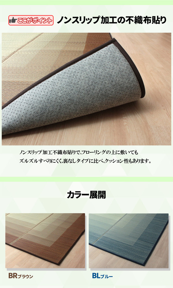 【素材】表地=い草※普通織 中材=ウレタンフォーム8mm 裏地=ポリエステル100%【不織布】※すべりにくい加工 ヘリ=ポリエステル65%、綿35%