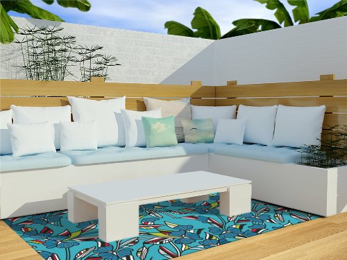 Kess InHouse Michelle Drew "Paper Leaf Blue" Indoor/Outdoor Floor Mat, 4-Feet by 5-Feet