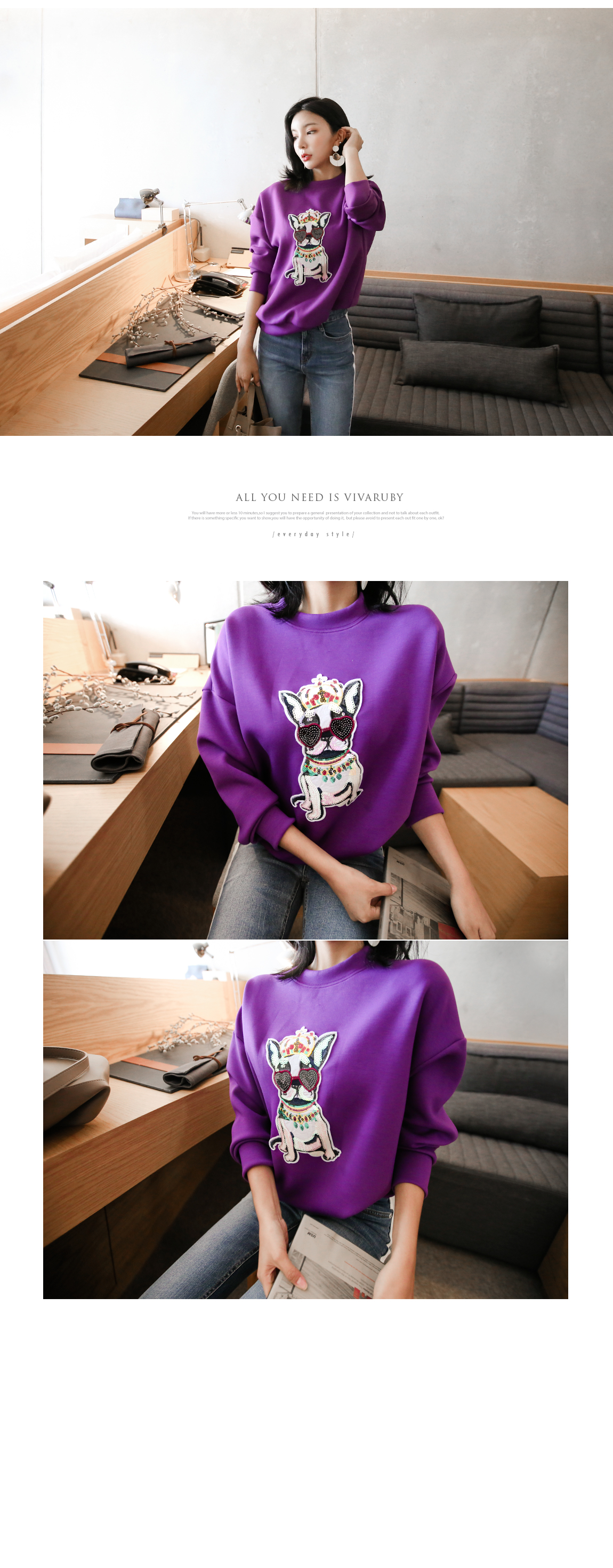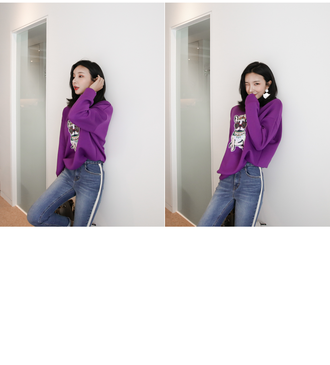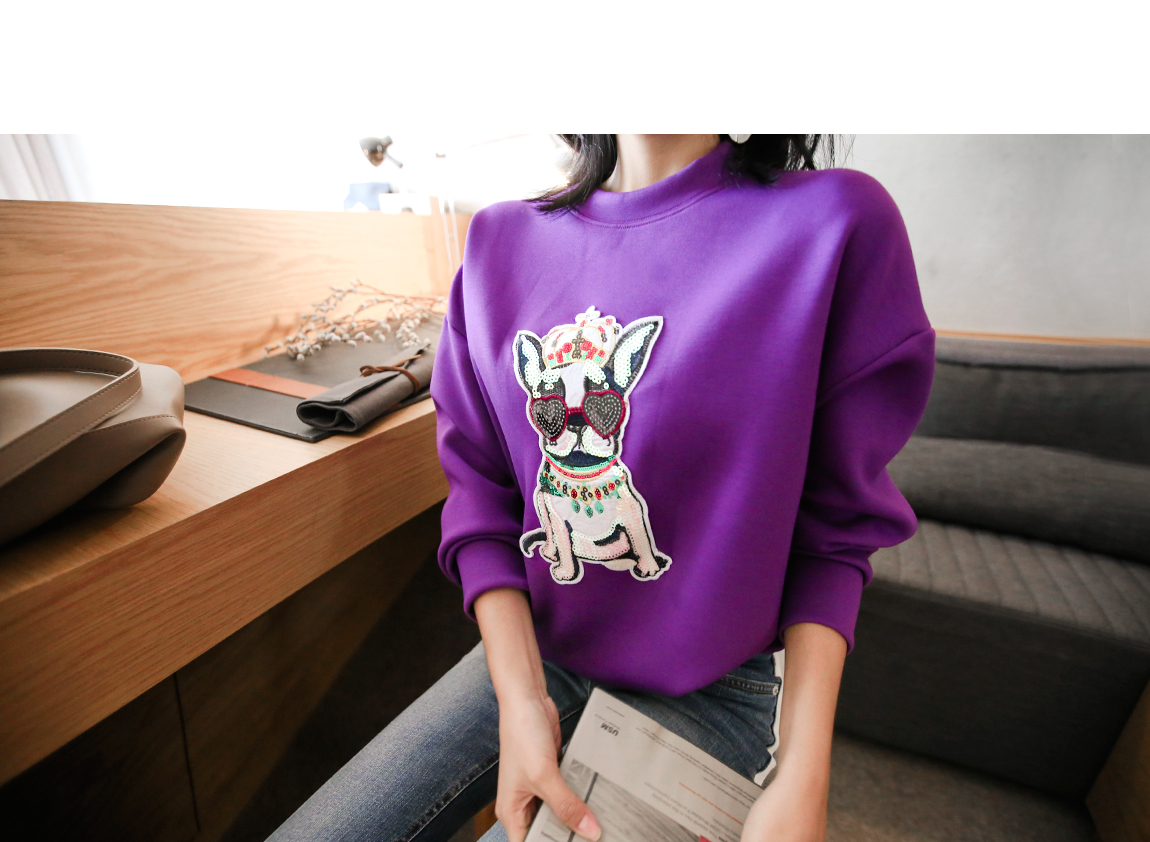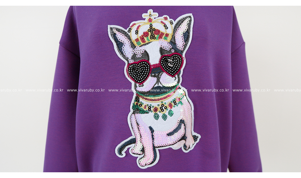 강아지 패치에 스팽글을 더해 러블리한 포인트를 주었어요