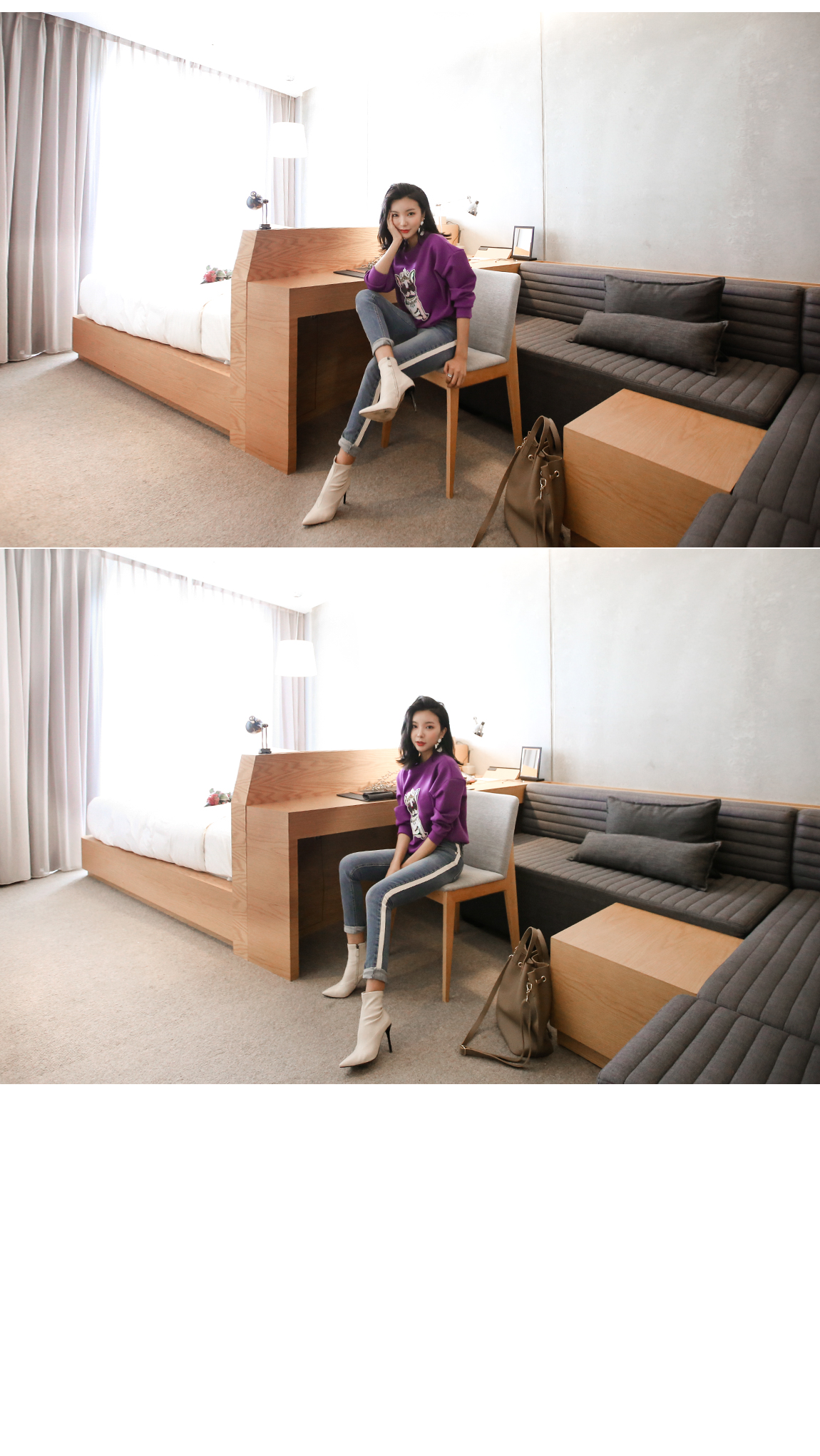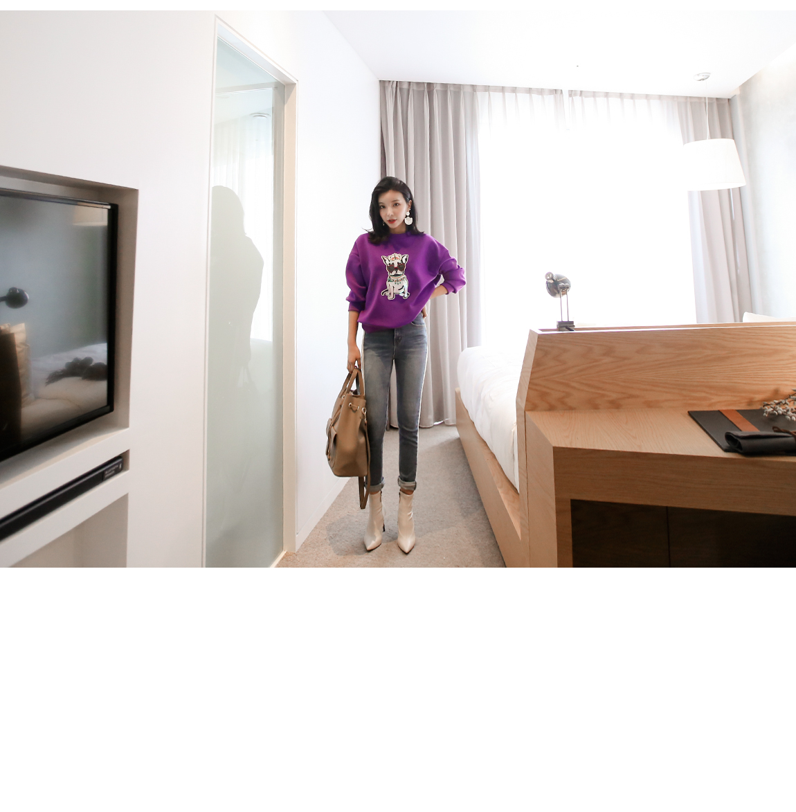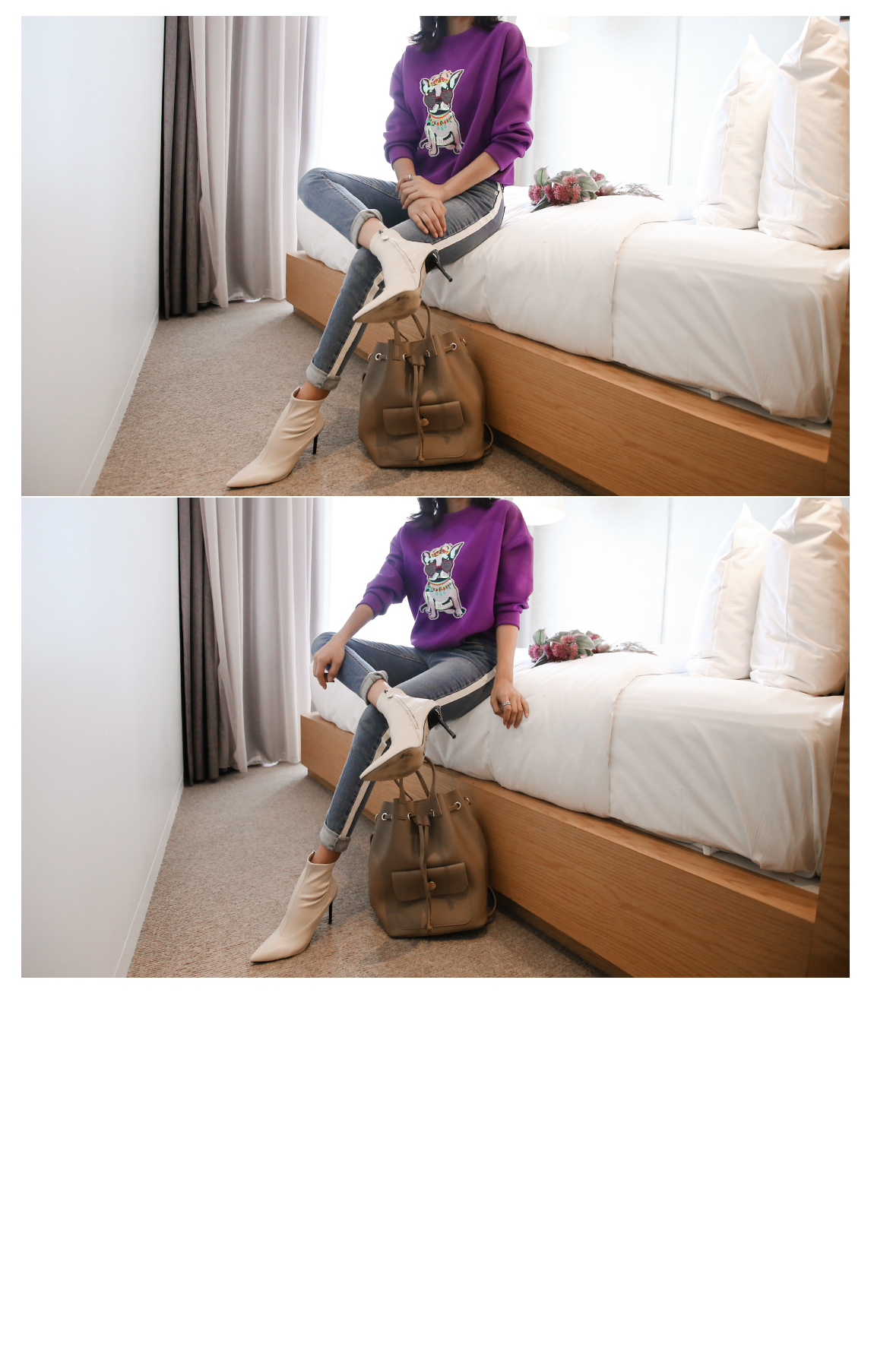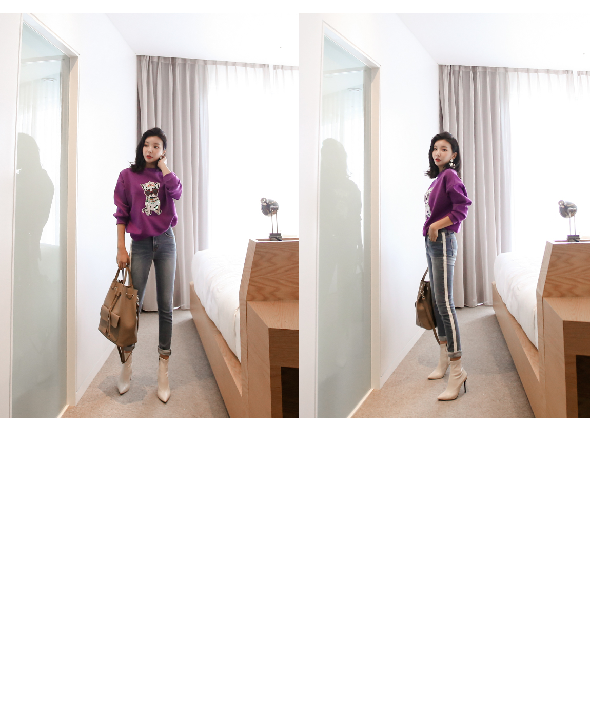 강아지 패치에 스팽글을 더해 러블리한 포인트를 주었어요