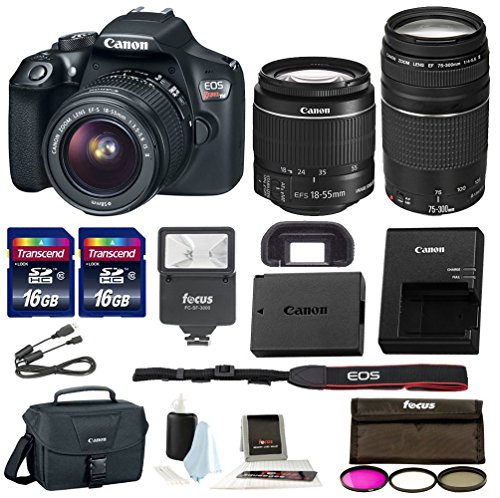 Includes - Canon EOS Rebel T6 DSLR Camera w/ EF-S 18-55mm f/3.5-5.6 IS II Lens / Canon EF 75-300mm f/4-5.6 III Telephoto Zoom Lens / Focus Filter Kit 3-Piece 58mm / Two Transcend 16GB Class 10 Memory Cards / Focus FC-3000 Digital Slave Flash / Canon 100ES EOS DSLR Camera Gadget Bag / 5 Piece Digital Camera Accessory Kit