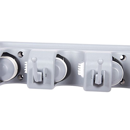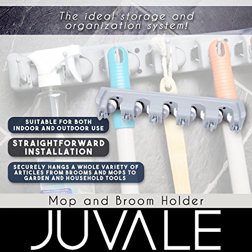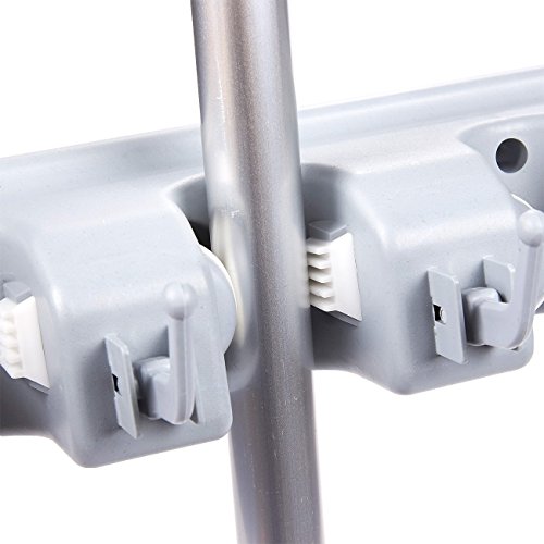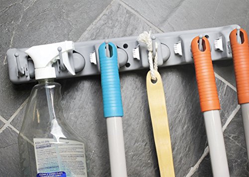 - SPACE SAVING UTILITY MOP AND BROOM HANGER: Declutter your garage with this wall mounted organizer which securely hangs a whole variety of articles from brooms and mops to garden and household tools together in orderly fashion.