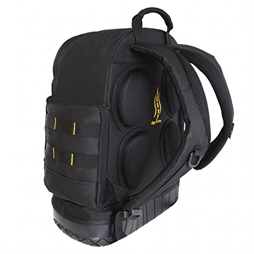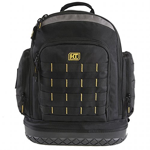- Heavy duty - the soft yet rugged high density polyester and hard plastic bottom mean this backpack is built to last. The hard bottom allows the backpack to stand up on its own for easy access to your tools at anytime.