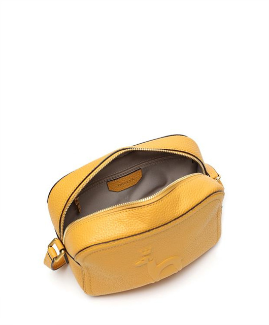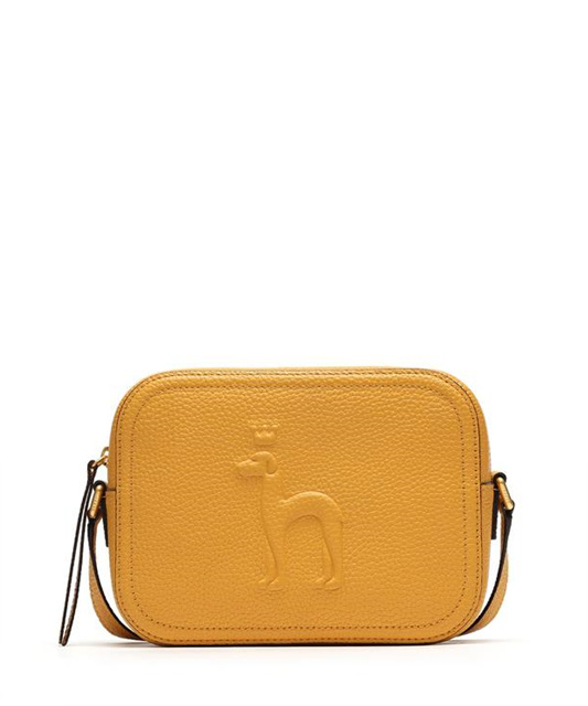 베이직한 옐로우 소가죽 바탕에 해지스만의 퍼피로고로 포인트를 준 크로스백 입니다.
