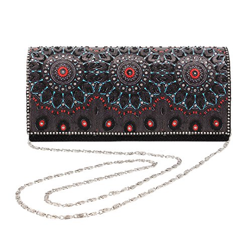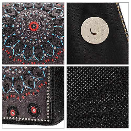 - FEATURES - Designed with special mesh fabric material and retro rhinestine-studded pattern. Provide three color options: Luxurious Gold, Mysterious Black and Elegant Silver. Surely there's a color for you. Also features magnetic hasp closure, polyester lining and a small pocket inside.