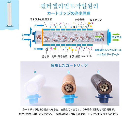 정수:정수용의 카트리지 부착,잡균 염소 고형연 Chloroform 농약 곰팡이취 등을 갈라 놓아지고, 인체에 친절한 수를 제공시킵니다.특히 아카창에게 최적입니다.카트리지의 교환 방법은 상품의 설명에 봐 주세요.