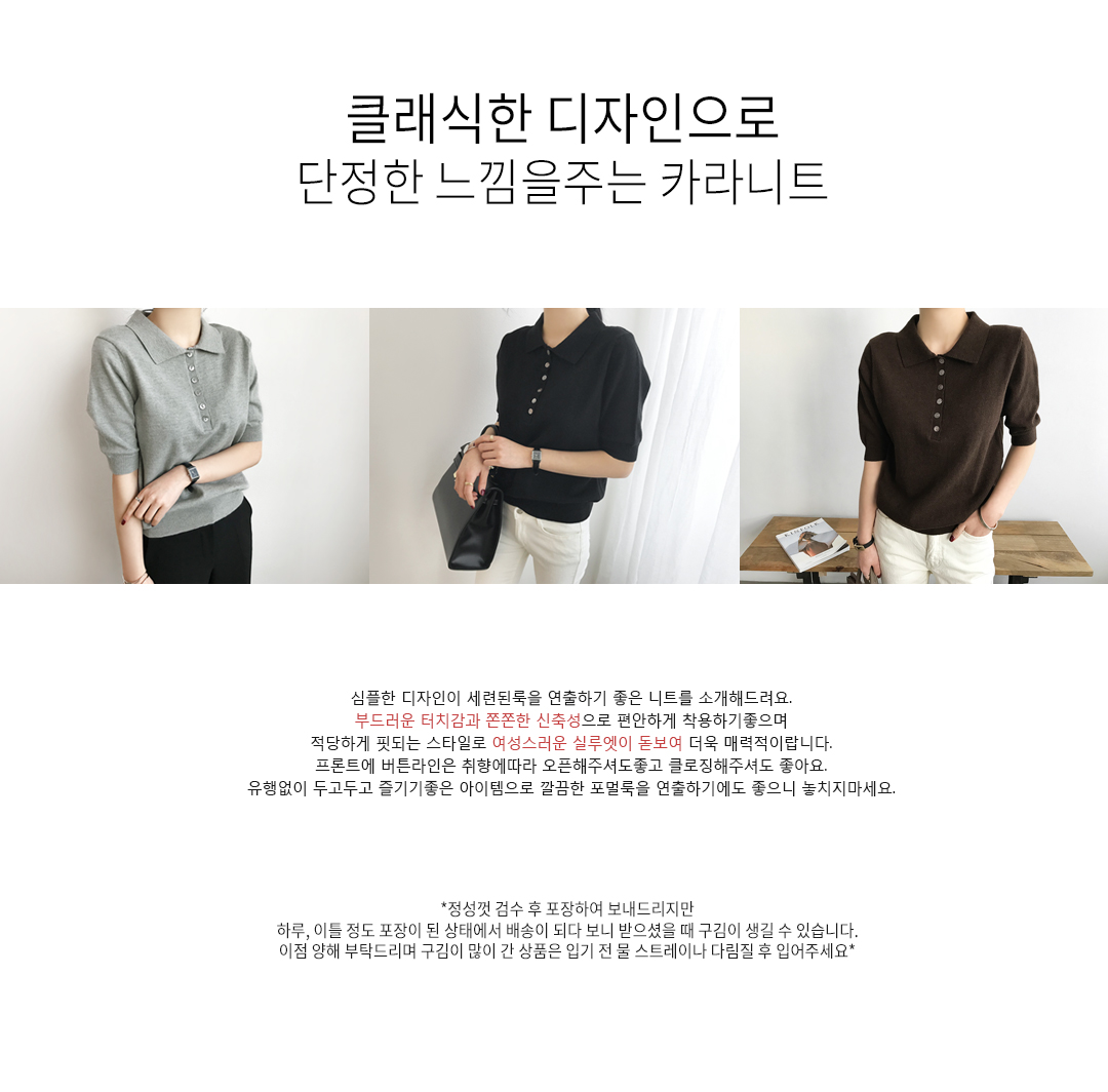 ※ 블랙컬러는 특성상 물빠짐이 있을수 있으니 꼭 ! 옷에 맞는 세탁법으로 세탁한 후 착용바랍니다.