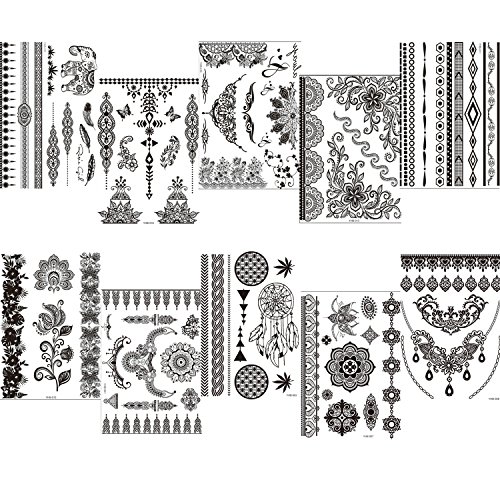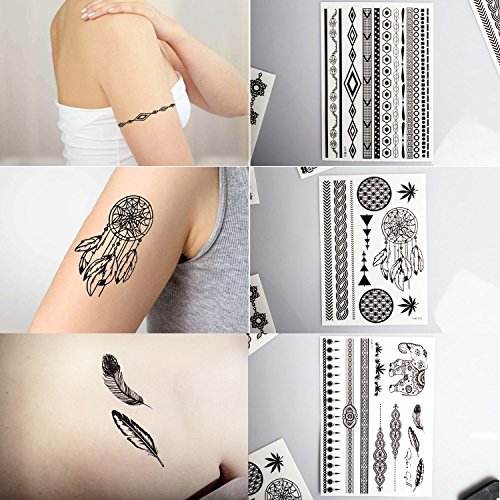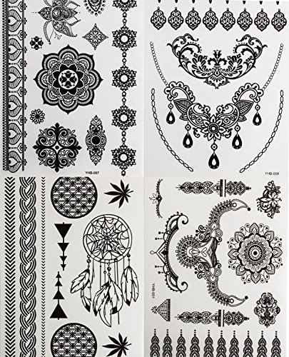 - ★Pretty & Unique: 10 Pcs, different patterns including mysterious flowers, dream catcher, chains, lace, necklaces, bracelets, elephant, feathers, butterflies, etc. Make your look more bohemian and chic, pops on your skin!