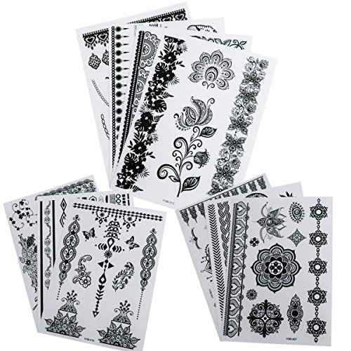 10 Pcs Black Henna Tattoo Stickers Temporary, ABUFF Temporary Tattoos, for Cool Girls, Tattooing for Holiday, Festival, Beach, Party( Lace, Dream-catcher,...