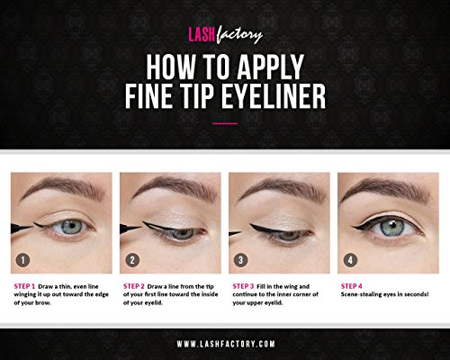 Fine Tip Liquid Eyeliner Pen, Black Waterproof, Perfect Cat Eyes and Wing Tips, Long Wearing Felt Tip Eye Liner by Lash Factory