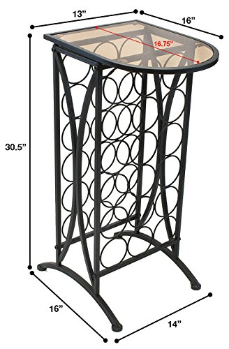 - CLASSIC DESIGN — Decorative frame made of durable metal construction with black powder coated finish and glass top — Each row stores up to 3 bottles (18 bottles total) — Holds most standard wine bottles — A statement piece that complements most styles and décor — Great home décor piece or gift item — Wine bottles NOT INCLUDED — Entire Unit Measures approximately 14” L x 16.75” W x30.5” H