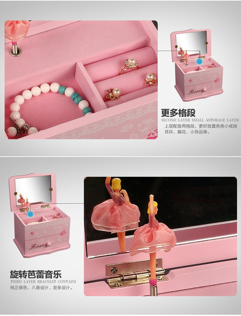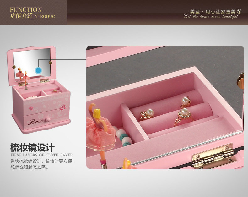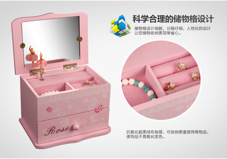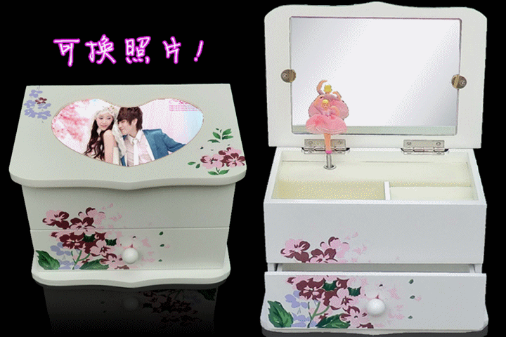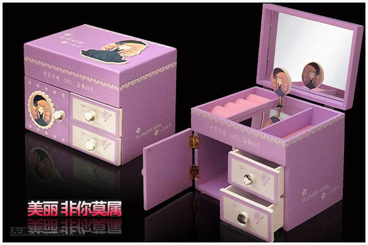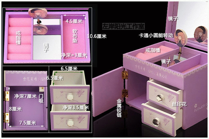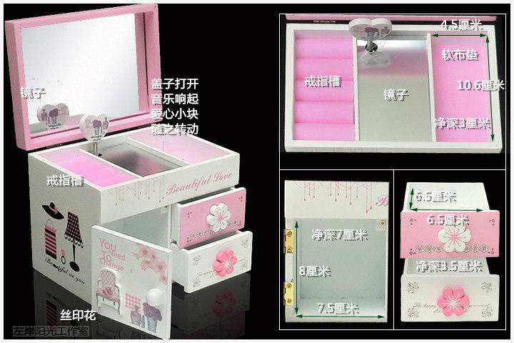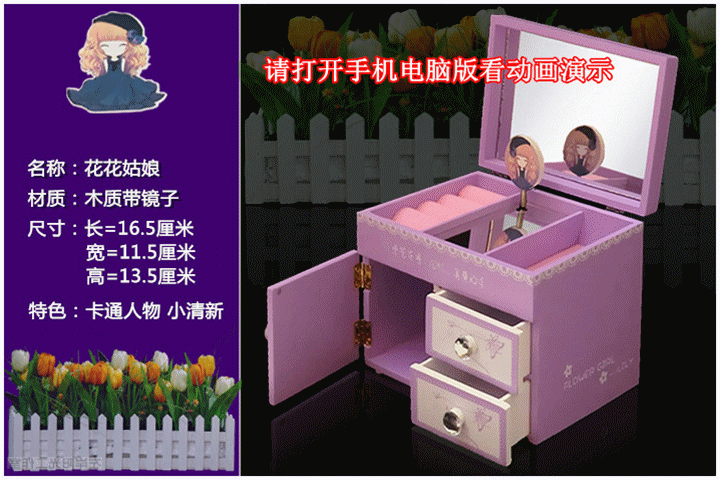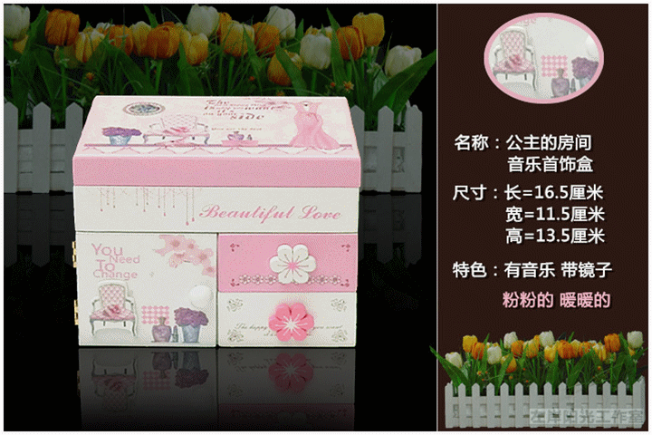 一.公主的房间音乐首饰盒 木质带镜子(尺寸见图)