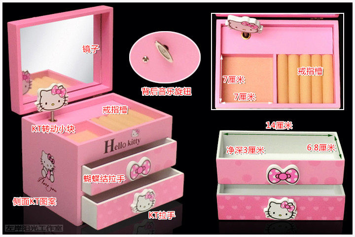 四.枚红色KT猫音乐首饰盒(尺寸见图)