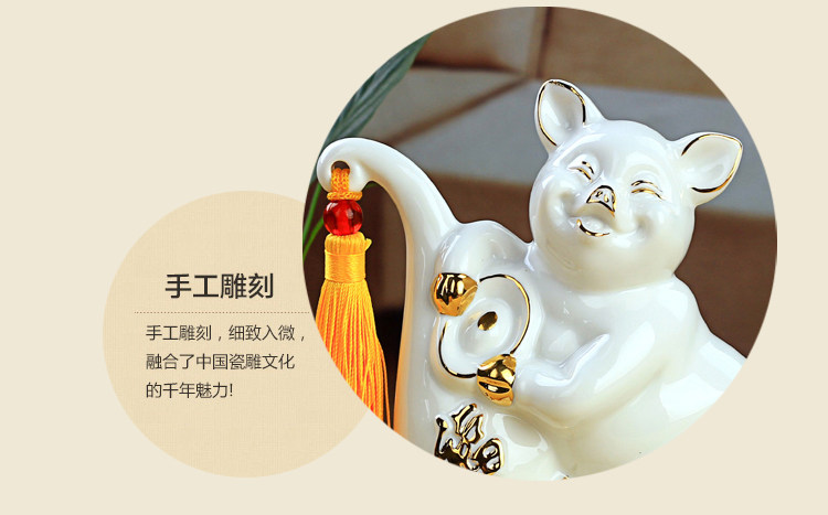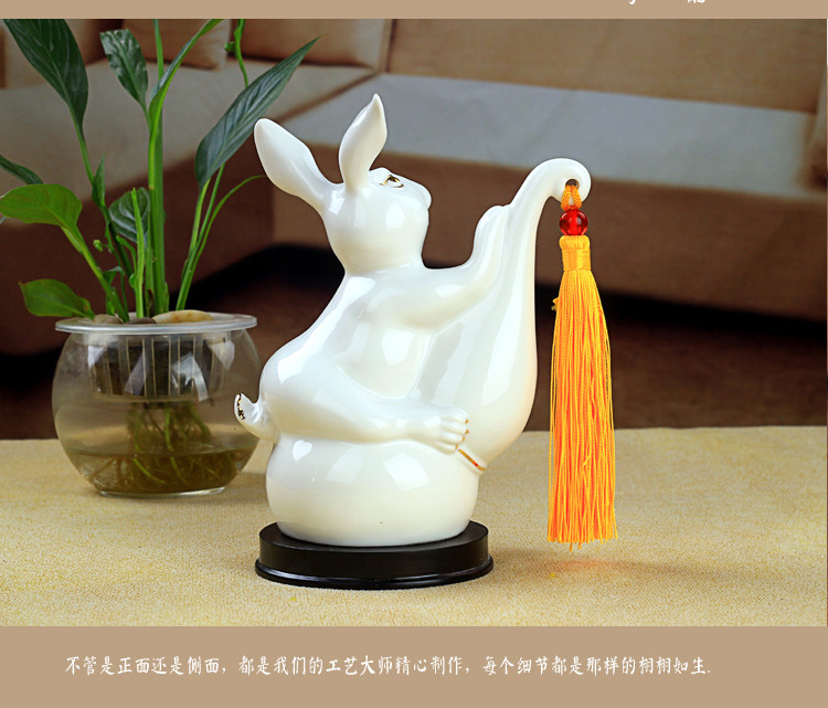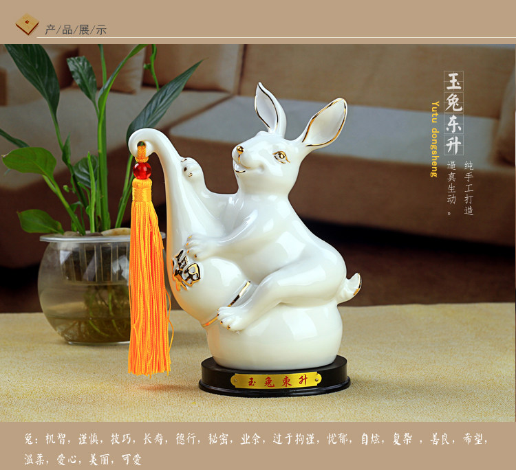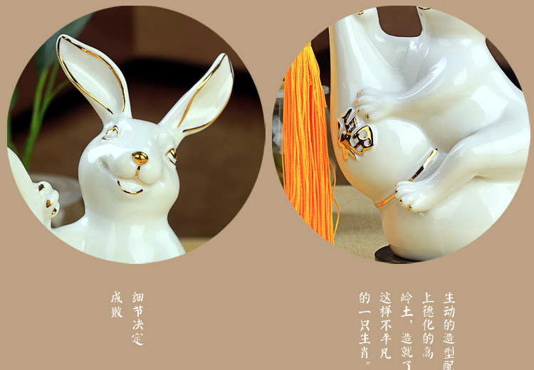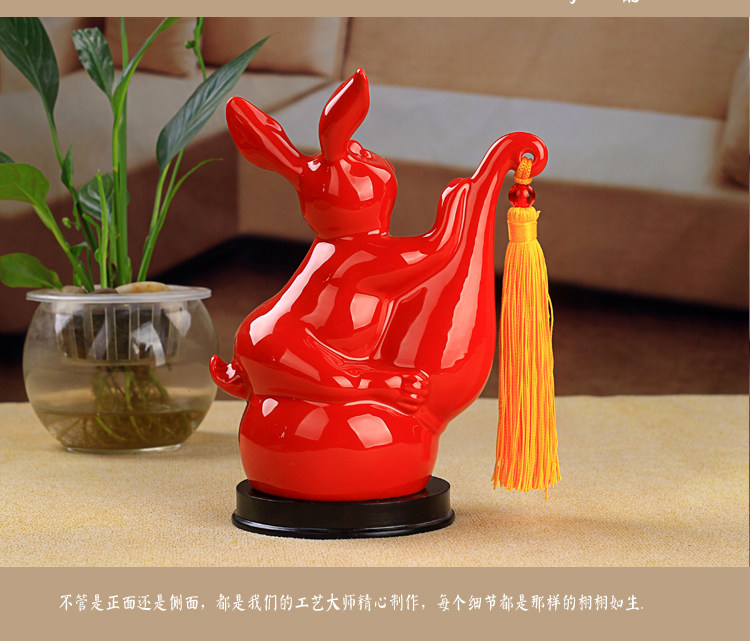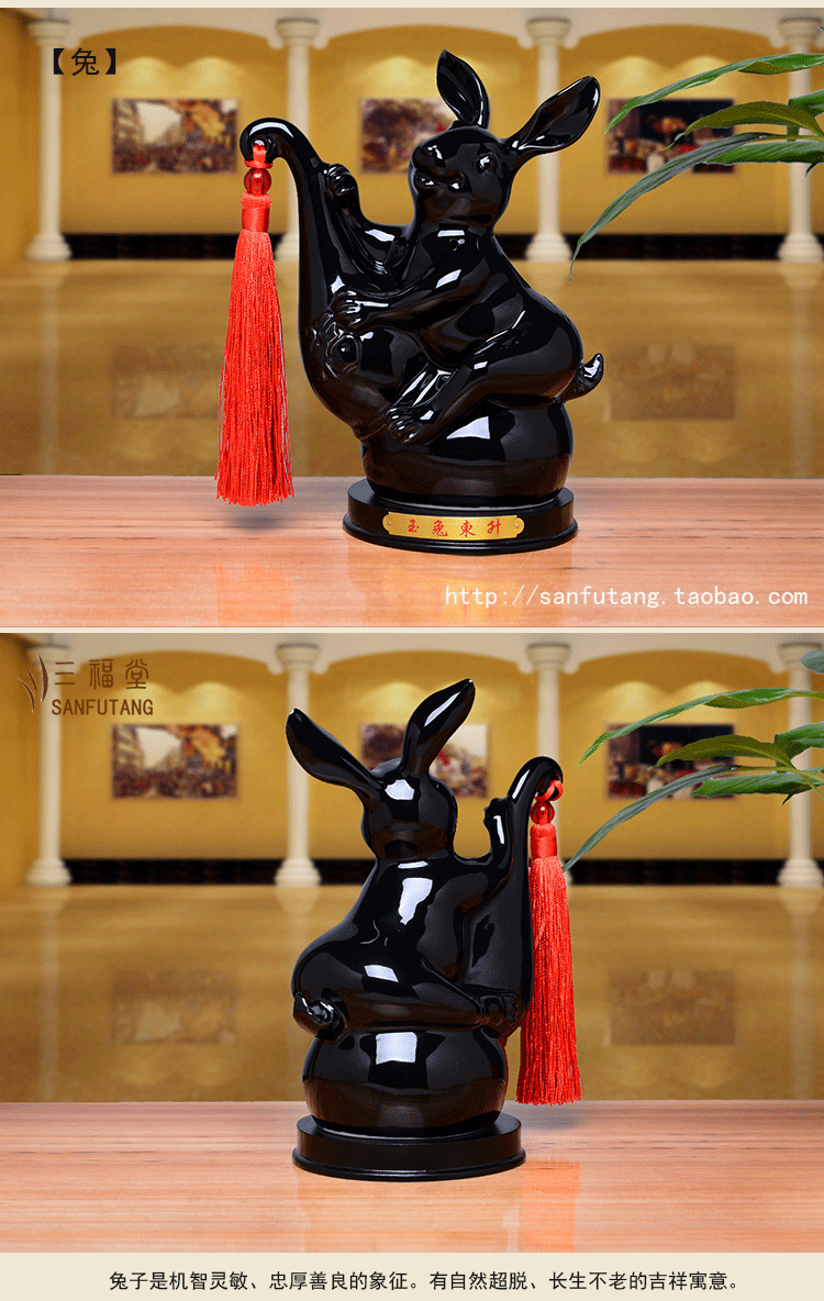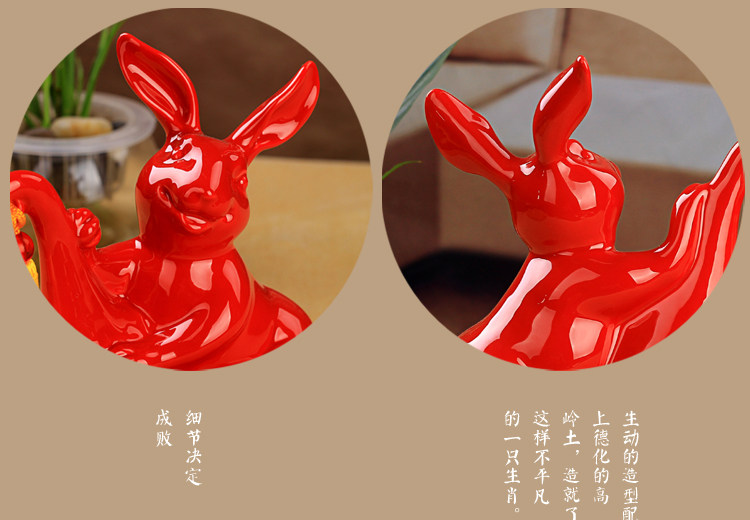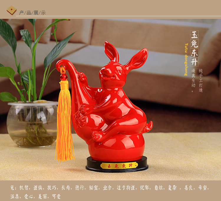 陶瓷兔子摆件十二12生肖工艺品红黑白瓷器结婚礼物家居装饰品风水