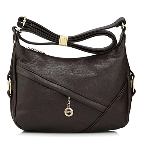 | YouNuo Womens Fashion Genuine Leather Purse Adjustable Strap Medium Size Multi Pockets Shoulder Bag |