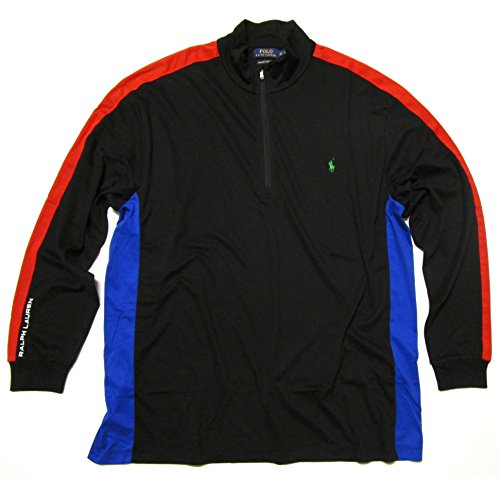 -. Feature : 100% pima cotton. Machine wash. / s' signature embroidered pony accents the left chest / Screen-P.R.Inted "" logo along lower right sleeve / Long sleeves with contrast racing stripes and ribbed cuffs / half-zip front, mockneck collar