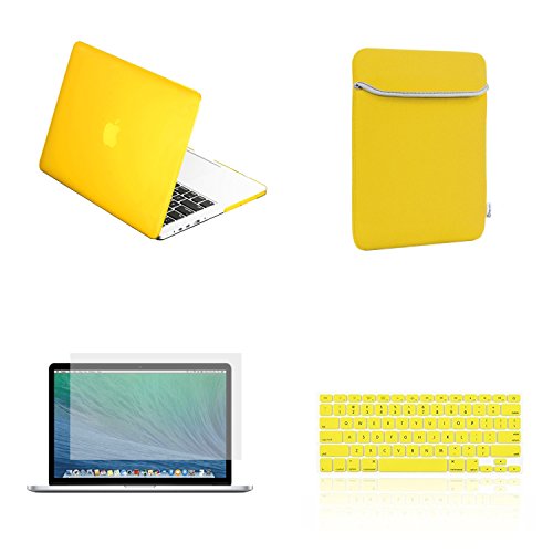 -. Binding : Personal Computers -. Brand : TOP CASE -. Label : TOP CASE -. Manufacturer : TOP CASE -. ProductGroup : PC Accessory -. ProductTypeName : CARRYING_CASE_OR_BAG -. Publisher : TOP CASE -. Size : 15 Inches -. Studio : TOP CASE -. Title : TopCase Macbook Pro 15" 15-inch A1398 with Retina Display 4 in 1 Bundle - Rubberized Hard Case Cover + Matching Color Soft Sleeve Bag + Silicone Keyboard Cover + LCD HD Clear Screen Protector (LATEST VERSION / No DVD Drive / Release June 2012) with TopCase Mouse Pad