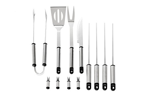 - DELUXE BBQ GRILL TOOLS: Provides 12 pieces of high quality, stainless steel barbecue grilling tools in one set.