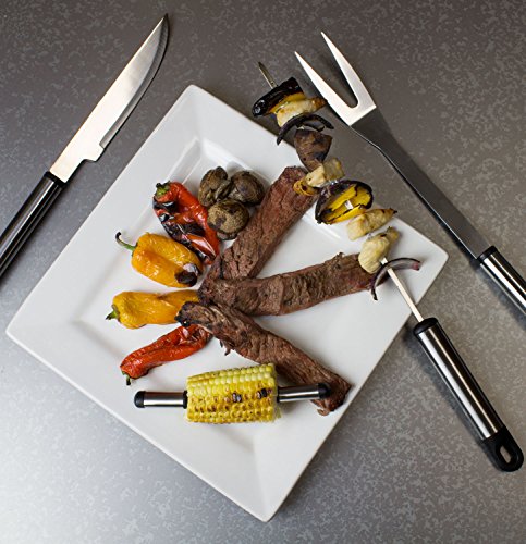 - COMPLETE SET: Includes 1x Oversize Spatula, 1x Tong, 1x Knife, 1x Fork, 4x Skewers, and 4x Corn Holders.