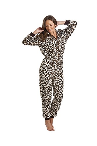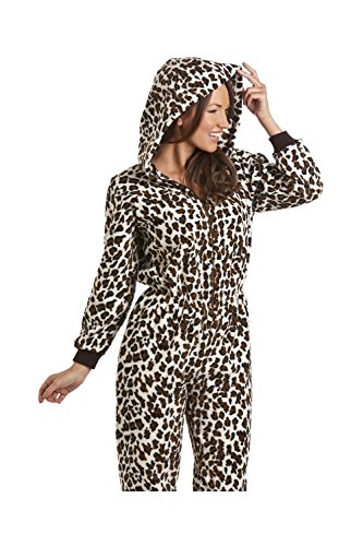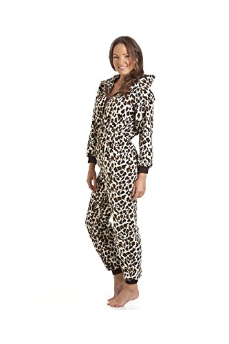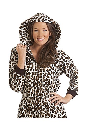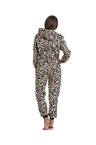 -. Title : Damen Schlafanzug-Einteiler aus Fleece - Mit Kapuze - Schneeleoparden-Muster - Größen 38-68